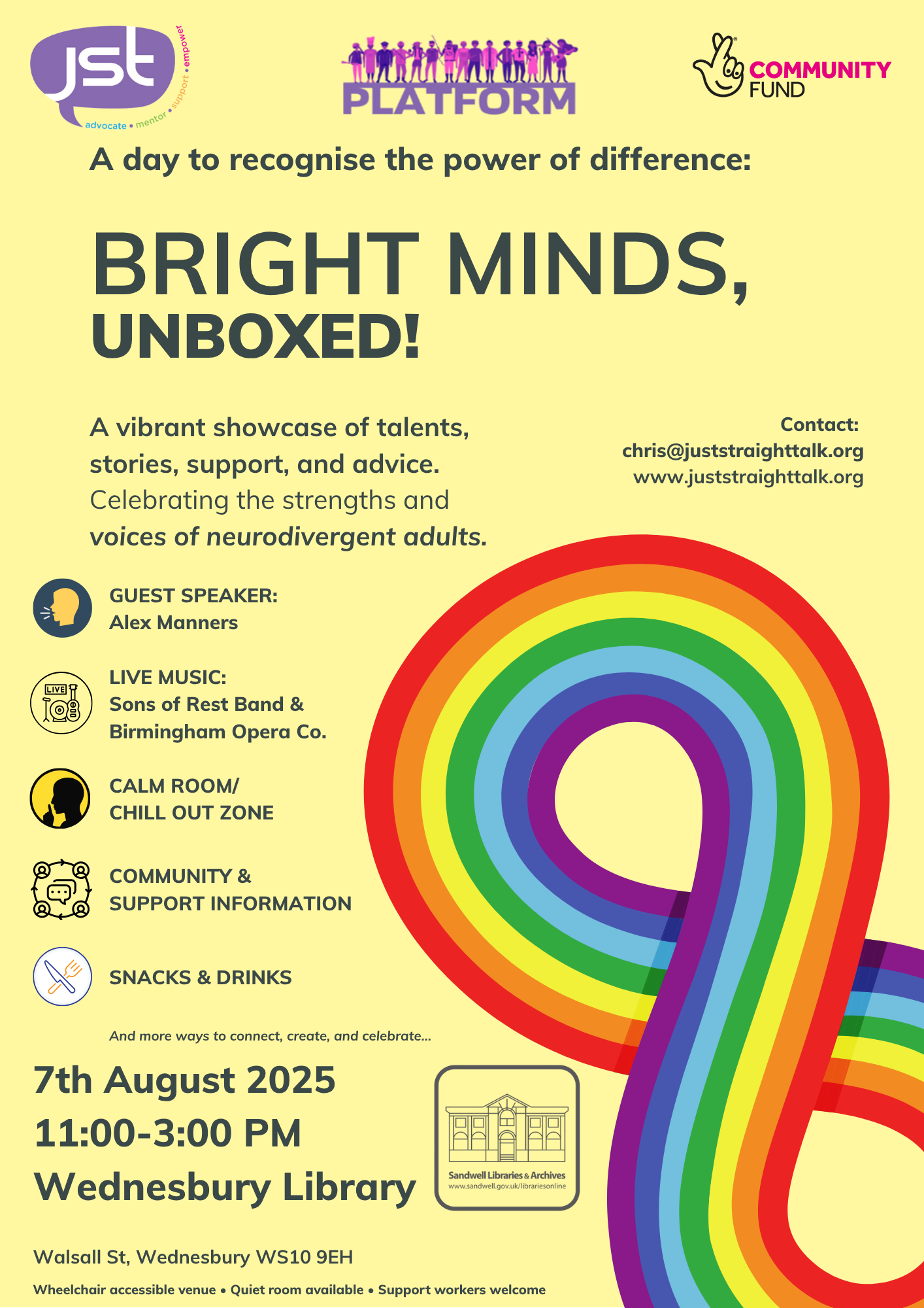 This inclusive open day is co-produced by and for neurodivergent adults. It features live performances, guest speakers—including Alex Manners—opera workshops with the Birmingham Opera Company, a Sound bath Soundscape, information and advice stalls (including key services from the local authority and the NHS), and a sensory-friendly chill-out space!
